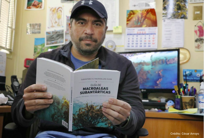 También estaba Nelso Navarro, algólogo y profesor de la Universidad de Magallanes y el Dr. Erasmo Macaya de la UdeC. «Nelso y yo somos investigadores del Centro Fondap IDEAL, desde donde recibimos el financiamiento, tanto para el diseño gráfico como para la impresión, que consta de mil copias«, detalla.