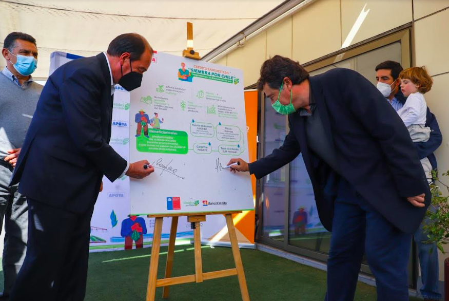 El ministerio de Agricultura y el BancoEstado decidieron impulsar el “Crédito BancoEstado Siembra por Chile”, a partir de una propuesta de la cartera, destinado, en un principio, a grandes y medianos cerealeros, afectados por la crisis hídrica y el aumento del valor de los fertilizantes debido a la guerra de Ucrania, con el propósito de fortalecer la relación en el mediano y largo plazo.