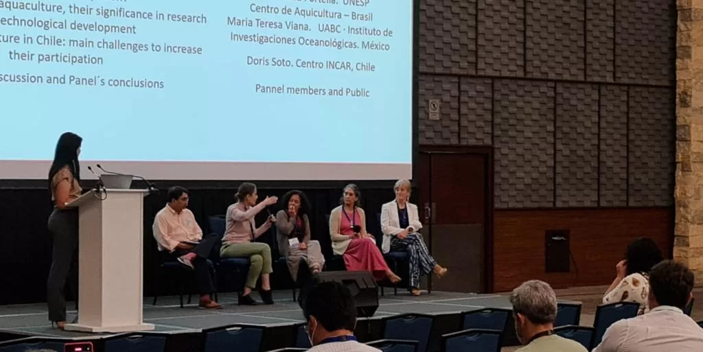 El panel de “Women in Aquaculture” y el público intercambiaron opiniones acerca de la necesidad de incentivos y apoyos en la academia y el sector público y privado, para permitir que más mujeres se incorporen al sector acuícola y puedan aportar al desarrollo sustentable del sector. También se propusieron iniciativas tanto nacionales como internacionales tales como el intercambio de ejemplos exitosos, mentorías, apoyo de becas, cooperación nacional e internacional para fortalecer la participación femenina en el sector.