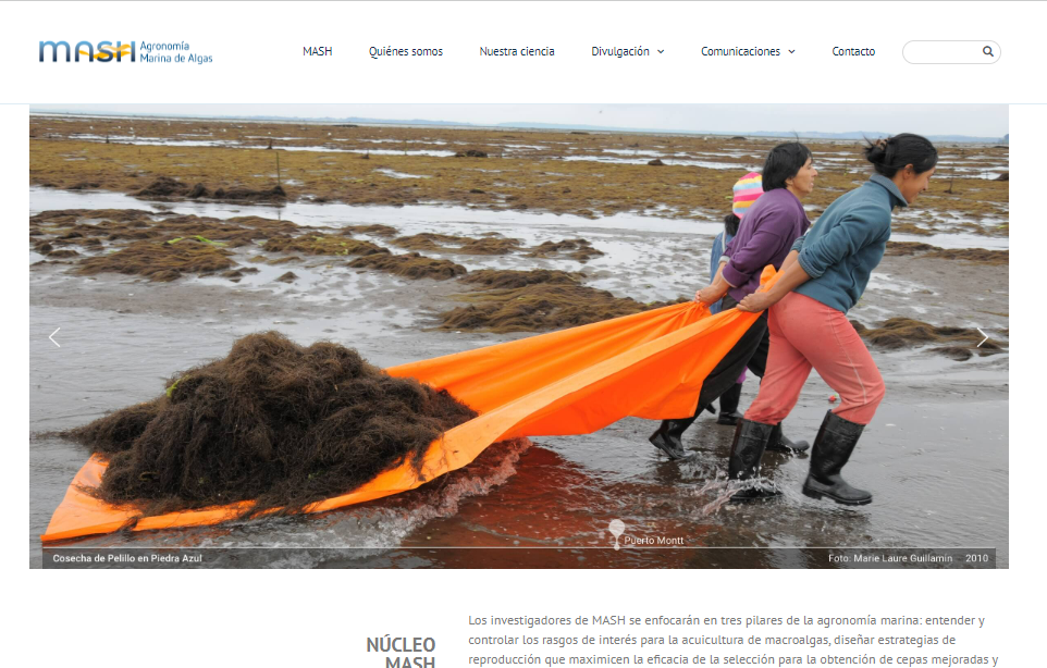 Para la directora del proyecto, Dra. Carolina Camus, contar con este nuevo instrumento de comunicación del Núcleo significa: “un paso súper importante para MASH, porque nos permitirá aumentar la visibilidad del proyecto y ampliar la red de comunicación dentro y fuera del mundo de las macroalgas. MASH pretende contribuir desde la ciencia al desarrollo de la acuicultura de macroalgas, y vemos en la página web un espacio para llegar a los actores involucrados en la industria e informarles lo que hacemos, conectar y dialogar”.