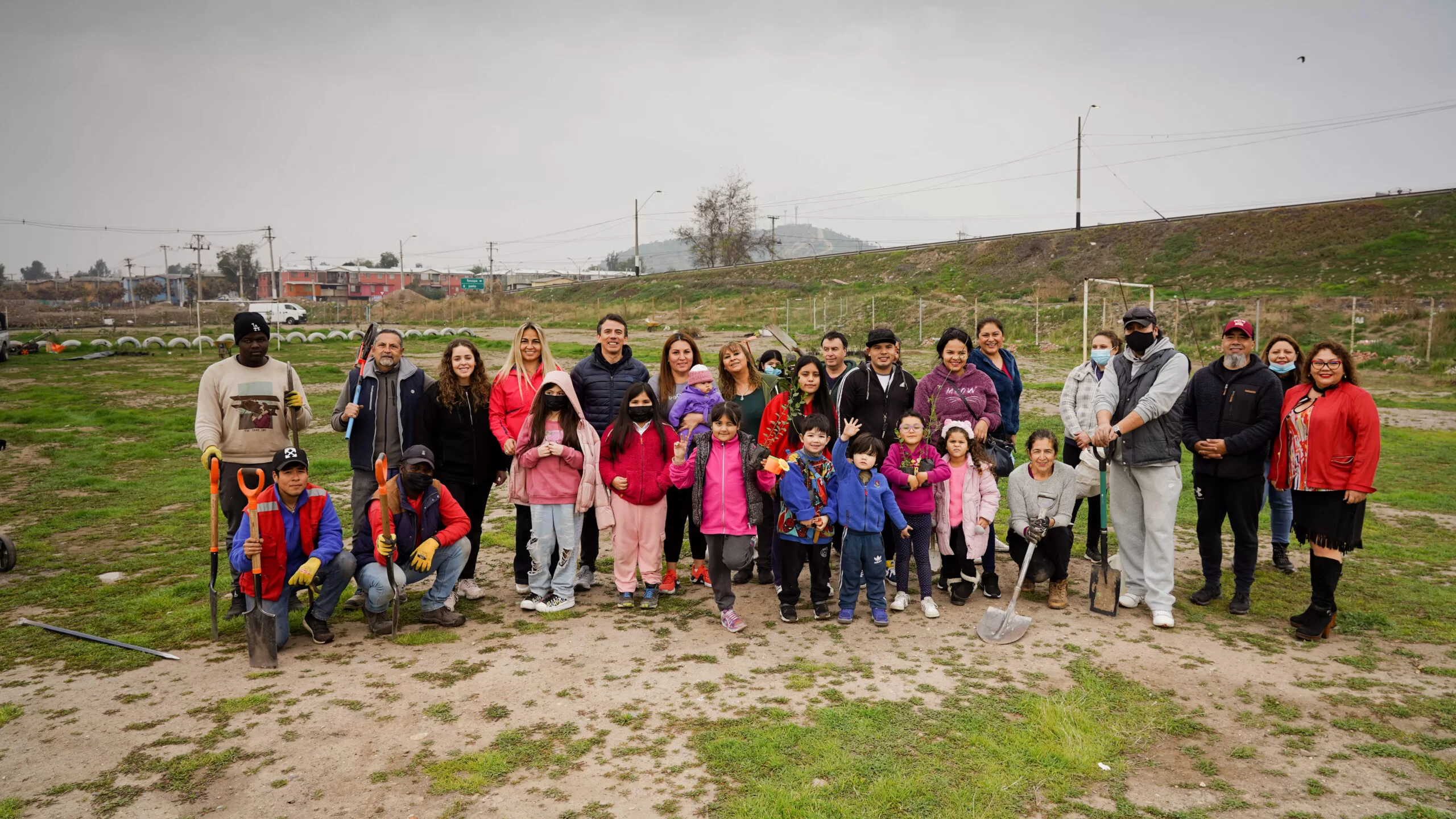 Vecinos de Bajos de Mena, en Puente Alto, llegaron al parque que denominaron “Ubuntu”, para plantar los 200 árboles para embellecer el lugar que ha sido levantado íntegramente por ellos. Se trata de una iniciativa que comenzó tras la pandemia del Covid-19, cuando las personas que vivían en las casas aledañas al terreno veían cómo ese lugar, que en un principio iba a ser utilizado para la construcción de viviendas, se transformó en un basural.