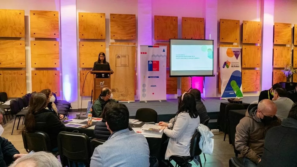 Con la presencia de autoridades y representantes de municipios y distintos servicios públicos, en el salón Claudio Arrau del Teatro Municipal de Chillán se llevó a cabo la Jornada Participativa “Socialización del diagnóstico y priorización de lineamientos de la Sociedad Gubernamental”, enmarcada en la Estrategia Regional de Implementación (ERI) de la Política Nacional de Parques Urbanos de Ñuble (PNPU) del Ministerio de Vivienda y Urbanismo, en conjunto con el Ministerio del Medio Ambiente.
