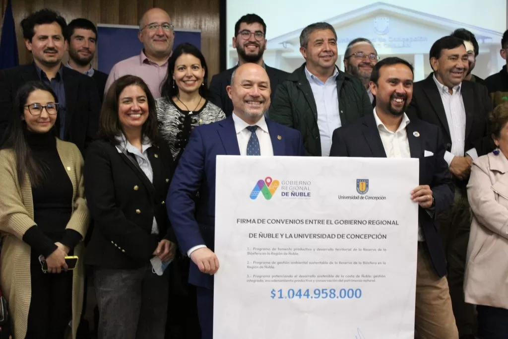 Una instancia simbólica se registró la tarde de este jueves en el Auditorio José Suárez Fanjul del Campus Chillán UdeC en el marco de la firma de convenio con el Gobierno Regional, el que permitirá la ejecución de tres proyectos por parte de la Casa de Estudios en un plazo máximo de tres años: «Fomento Productivo y Desarrollo Territorial de la Reserva de la Biósfera en la Región de Ñuble”; “Gestión Ambiental Sustentable de la Reserva de la Biósfera en la Región de Ñuble” y “Potenciando el Desarrollo sostenible de la Costa de Ñuble: Gestión Integrada, Encadenamiento Productivo y Conservación del Patrimonio Natural”, los que suman un monto total de $1.044.958.