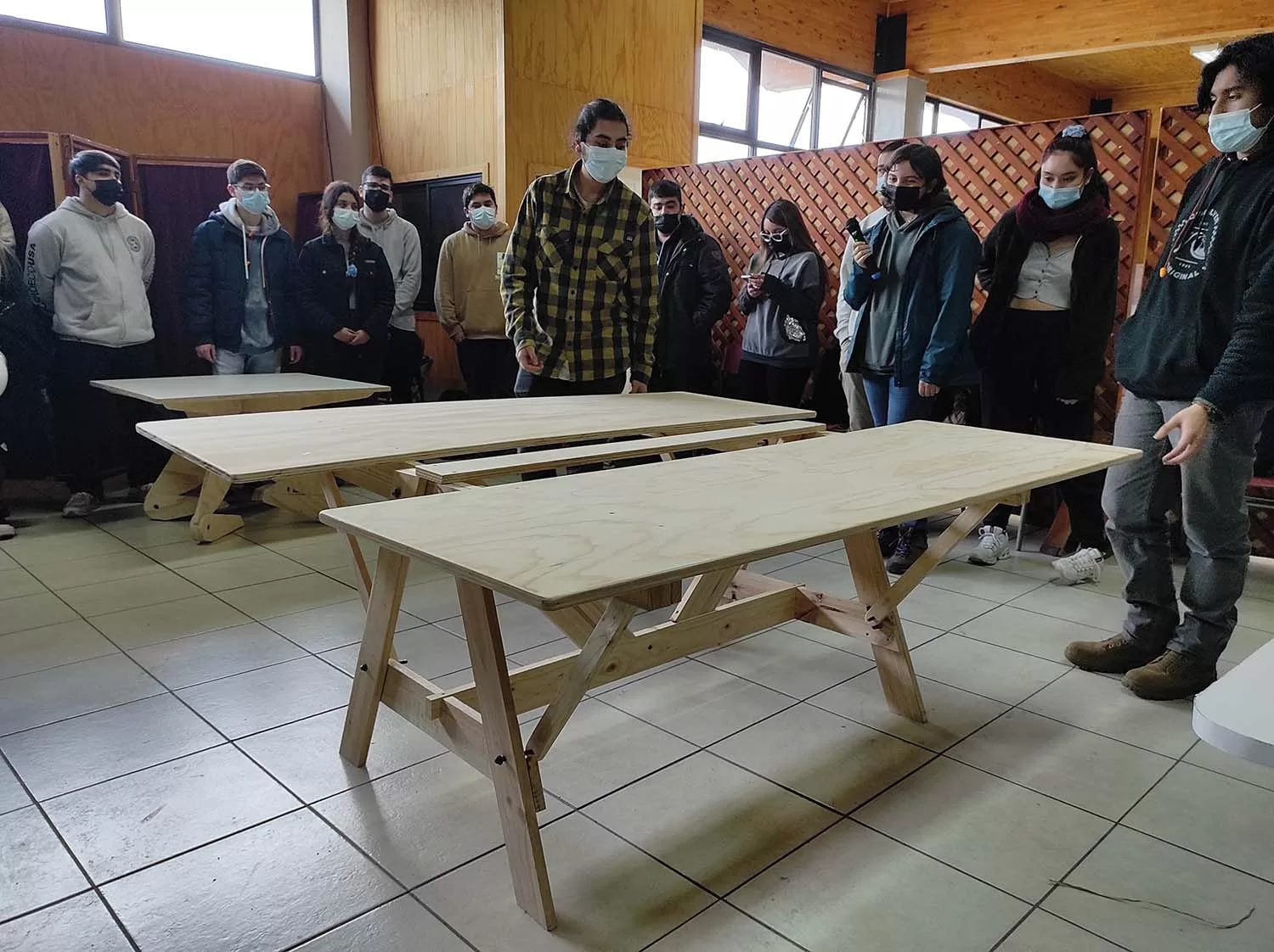 Cerca de 40 estudiantes de arquitectura de la Universidad San Sebastián (USS) de Concepción se trasladaron hasta el Colegio Cholguán en la región de Ñuble, para presentar y recoger impresiones de los prototipos de comedores de madera, que ellos mismo diseñaron para la comunidad estudiantil que atiende a 400 niños y niñas de la zona.