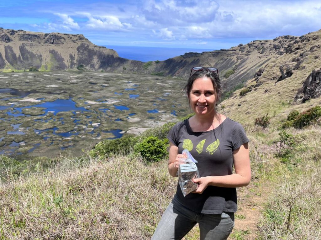 La académica de la Facultad de Agronomía de la Universidad de Concepción, Dra. Macarena Gerding González, se encuentra en Rapa Nui, desarrollando trabajo en terreno, para comprobar los avances respecto de la investigación sobre “Microorganismos simbióticos para la inoculación y restablecimiento de la especie extinta en Rapa Nui: Sophora toromiro”.