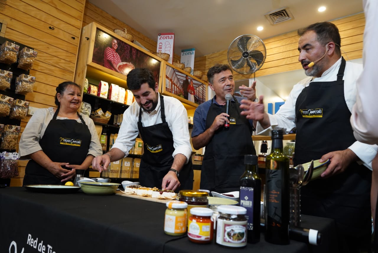 La elaboración de estas preparaciones estuvo a cargo del chef del programa Recomiendo Chile, Eugenio Melo, quien contó con la colaboración de los ministros de Agricultura, Esteban Valenzuela; de Economía y Comercio, Nicolás Grau; del director nacional de INDAP, Santiago Rojas; y de Olga Gutiérrez, presidenta de la Confederación Unidad Obrero Campesina de Chile (UOC), agrupación encargada de la administración y funcionamiento de esta Tienda Mundo Rural.