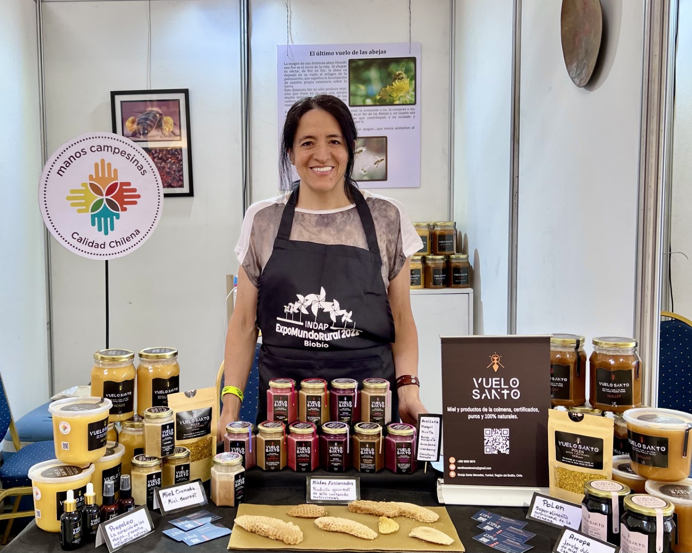 «La miel cremada es dar un paso más en la escala gourmet con la miel, y fusionarla con alimentos liofilizados de alto valor nutritivo, es lograr un producto único, rico en antioxidantes y de fácil consumo», así resumió Carolina Soto -productora apícola de la empresa «Vuelo Santo» de Yumbel- su línea de miel cremada que lanzó oficialmente durante la ExpoMundoRural de Indap en el Parque Bicentenario de Concepción.