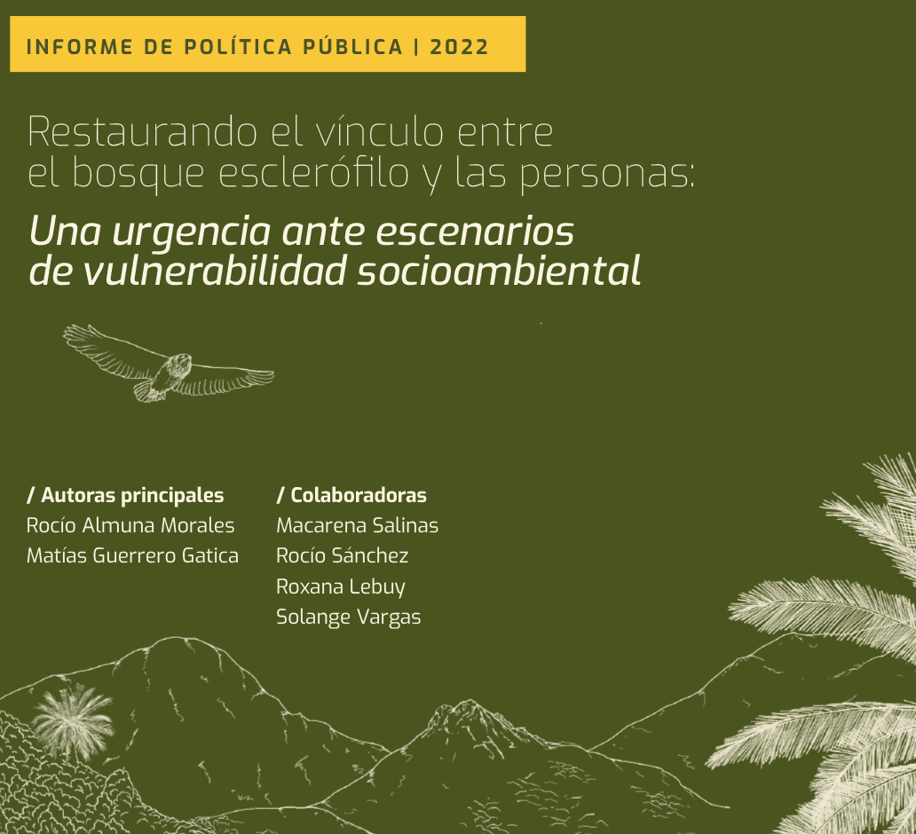 Este informe https://ieb-chile.cl/informes/policy-brief-bosque-esclerofilo-personas-2022/ analiza la situación actual de este ecosistema y plantea un llamado urgente a restaurar el vínculo entre el bosque esclerófilo y las personas, considerando los escenarios actuales de vulnerabilidad socioambiental. Su apuesta, es hacerlo desde los enfoques transdisciplinario, socio-ecológico y de género, para los que también entrega una serie de recomendaciones específicas.