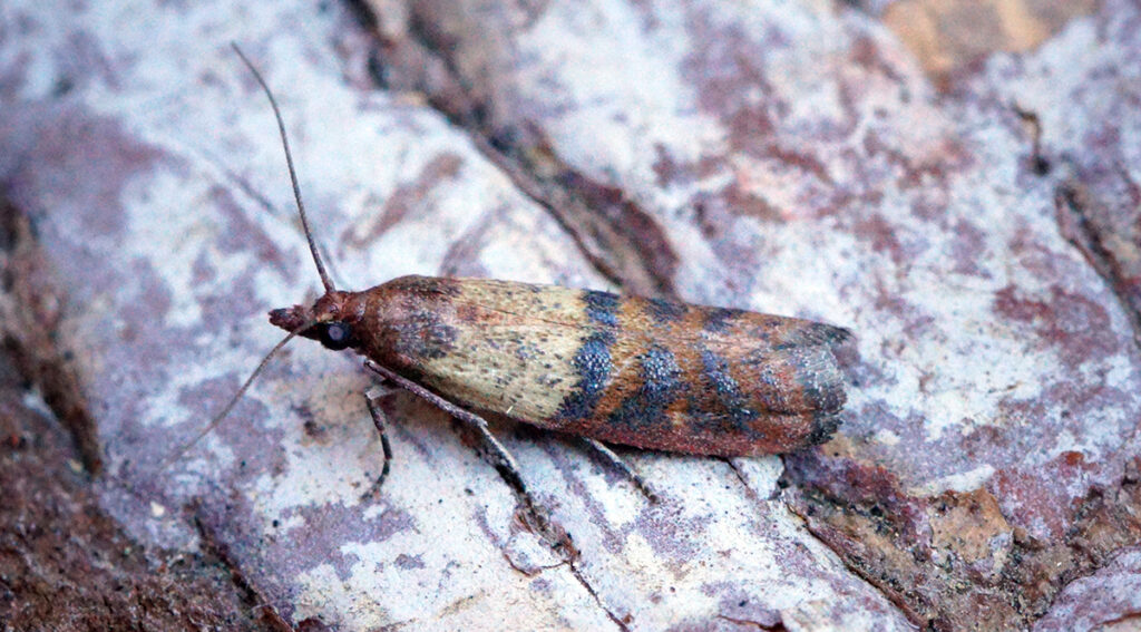 El descubrimiento de Plodia interpunctella, también conocida como la “polilla india de la harina” o “polilla de los granos”, marca un hito significativo: esta especie es considerada una plaga doméstica en gran parte del mundo. Sus larvas polillas suelen colocar sus huevos en granos como avena, arroz o harina, donde se desarrollan hasta convertirse en polillas adultas que revolotean por las alacenas y despensas.