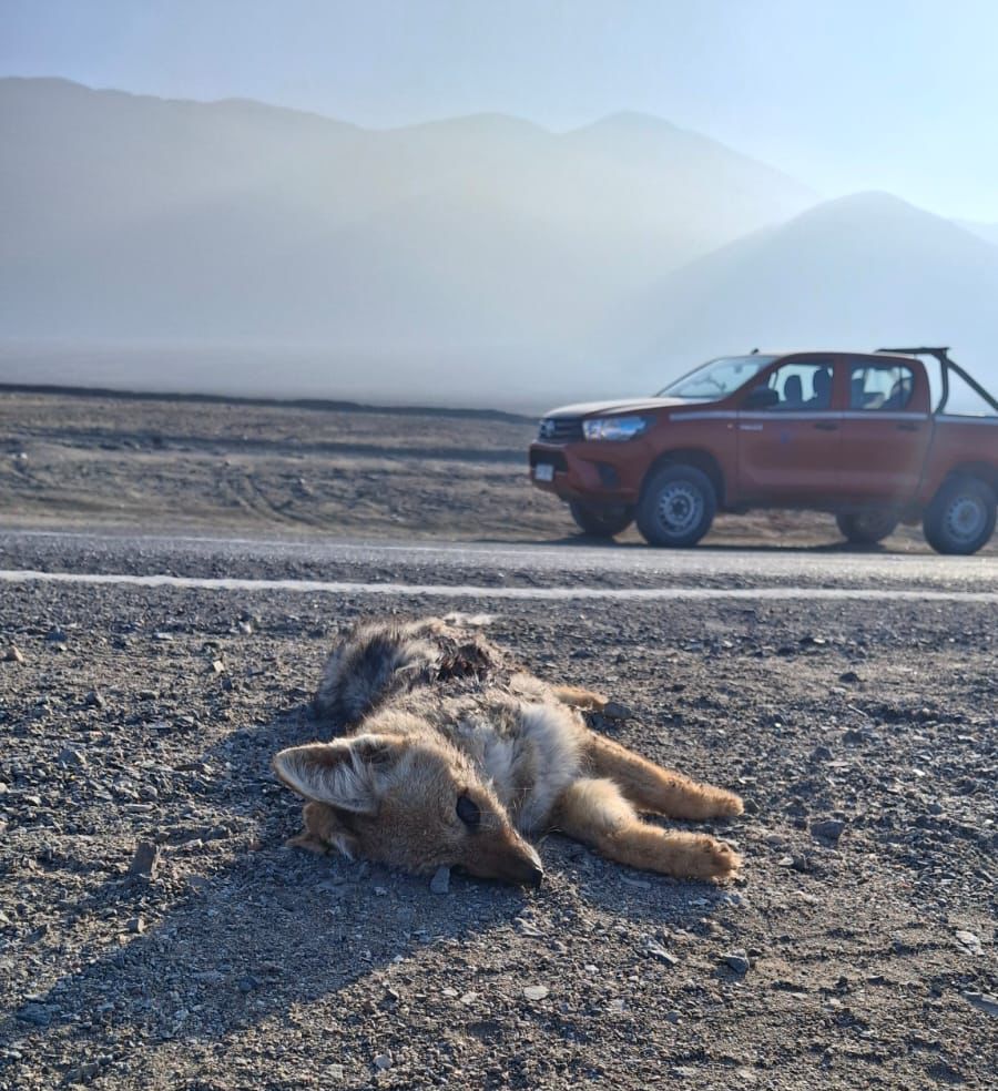 Guardaparques del Parque Nacional Morro Moreno descubrieron un ejemplar de zorro chilla muerto por atropello, en la ruta B-440, en los límites de esta área protegida ubicada en la Región de Antofagasta.