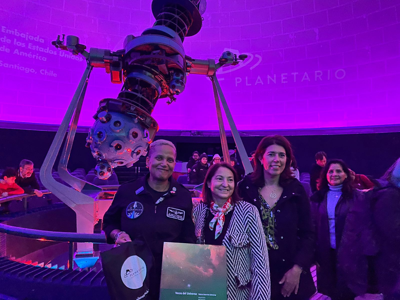 Una destacada visita tuvo Planetario Usach. La astronauta estadounidense Dra. Sian Proctor dictó la charla “Podemos soñar con llegar al Espacio” ,evento que contó con la participación de la Vicerrectora de Vinculación con el Medio de la Universidad de Santiago de Chile, Dra. Ana María Fernández, y la Directora Ejecutiva de Planetario USACH, Jacqueline Morey.