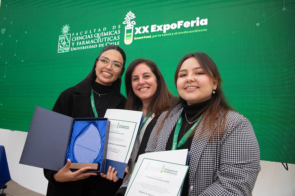 La creatividad y el compromiso con la salud y el medioambiente fueron el sello de la XX Expoferia de Alimentos Innovadores de la Universidad de Chile, evento que este año ganó “Koby”, una bebida fermentada a base de infusión de flores, con propiedades antioxidantes y diuréticas. La innovadora propuesta, que impresionó por su calidad y originalidad, fue desarrollada por la estudiante Amaralina Olguín. El segundo lugar fue para Tofulate, barra de chocolate rellena con pasta de tofu saborizada con esencia de almendras, creada por Christopher Sanhueza, Tomás Arias y Marcelo Alvarado. El tercer lugar, en tanto, fue un empate entre TriAndina, un rico pan amasado libre de gluten elaborado con harina de camote, yuca y quinoa, de María Ignacia Vega, y Aranquipop, una barrita libre de gluten a base de quinoa inflada, rellena de arándanos y cubierta de chocolate, de Camila Parra. Este último producto también fue el favorito del público, elegido mediante votación a través de un código QR.