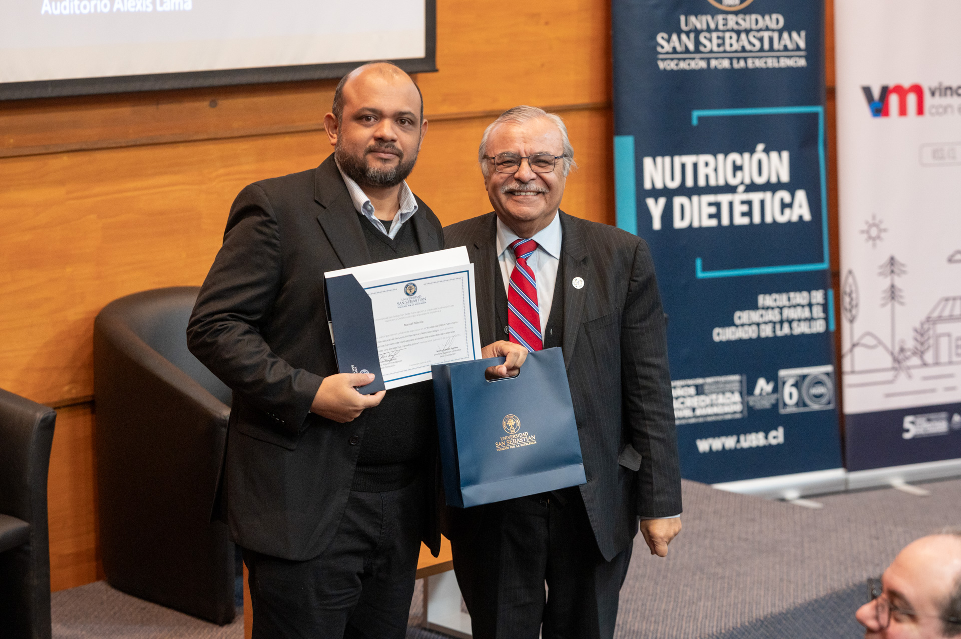 La exposición del doctor Manuel Palencia se llevó a cabo en el contexto del Seminario Internacional sobre Recursos Alimentarios y Nanotecnología, que se desarrolló en el auditorio Dr. Alexis Lama de la Universidad San Sebastián sede Concepción.