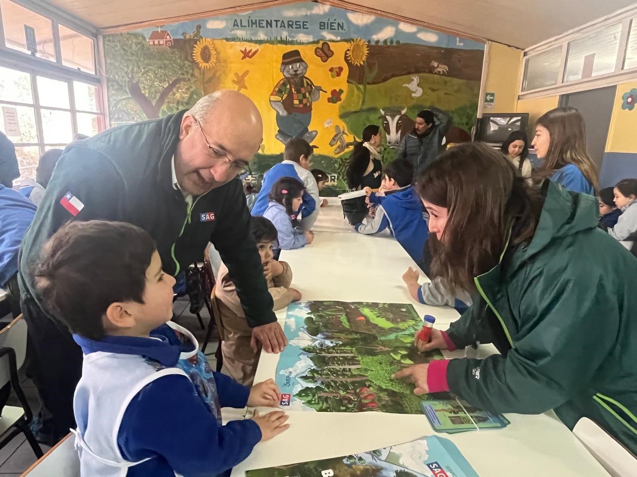 Hasta la escuela Javier Jarpa Sotomayor se trasladaron funcionarios/as del el Servicio Agrícola y Ganadero (SAG) de Ñuble, junto a su Director Regional, Osvaldo Alcayaga, para presentar a los niños y niñas un entretenido juego sobre el cuidado del bosque nativo, a través del cual se busca inculcar en las nuevas generaciones el valor y la responsabilidad de proteger este recurso natural vital.