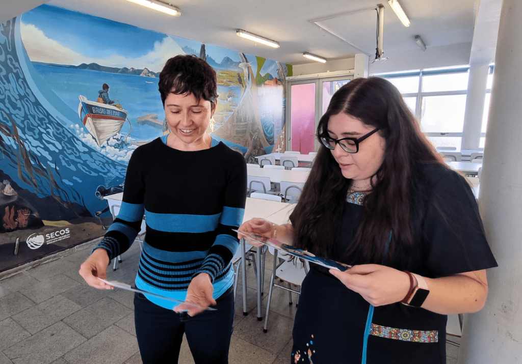 “El trabajo que se está realizando en las comunidades de Coliumo y Tubul involucra esfuerzos sostenidos en el tiempo en varios niveles de integración, diálogo y de compartir saberes y aprendizajes. En ambas comunidades, desde el equipo de investigación de Artes y Ciencias del Instituto Milenio SECOS, hemos ido desarrollando un trabajo a largo plazo en colaboración con las comunidades educativas y las escuelas, ya que consideramos que cumplen un rol fundamental en el resguardo del conocimiento y la memoria, y son articuladoras de las dinámicas comunitarias, además, por supuesto, de su rol como formadoras de las nuevas generaciones”, explica Fernanda Oyarzún, investigadora SECOS y artista.