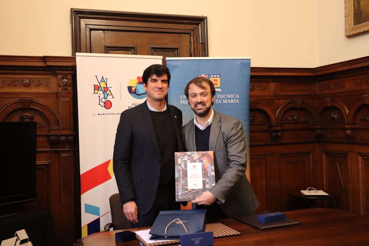 Con el objetivo de formalizar la colaboración entre la Universidad Técnica Federico Santa María y la Ilustre Municipalidad de Valparaíso, el rector Juan Yuz y el alcalde Jorge Sharp se reunieron para firmar un acuerdo entre ambas instituciones que garantice una serie de actividades e iniciativas con enfoque en la prevención de riesgos de desastres, así como un resguardo del patrimonio cultural.