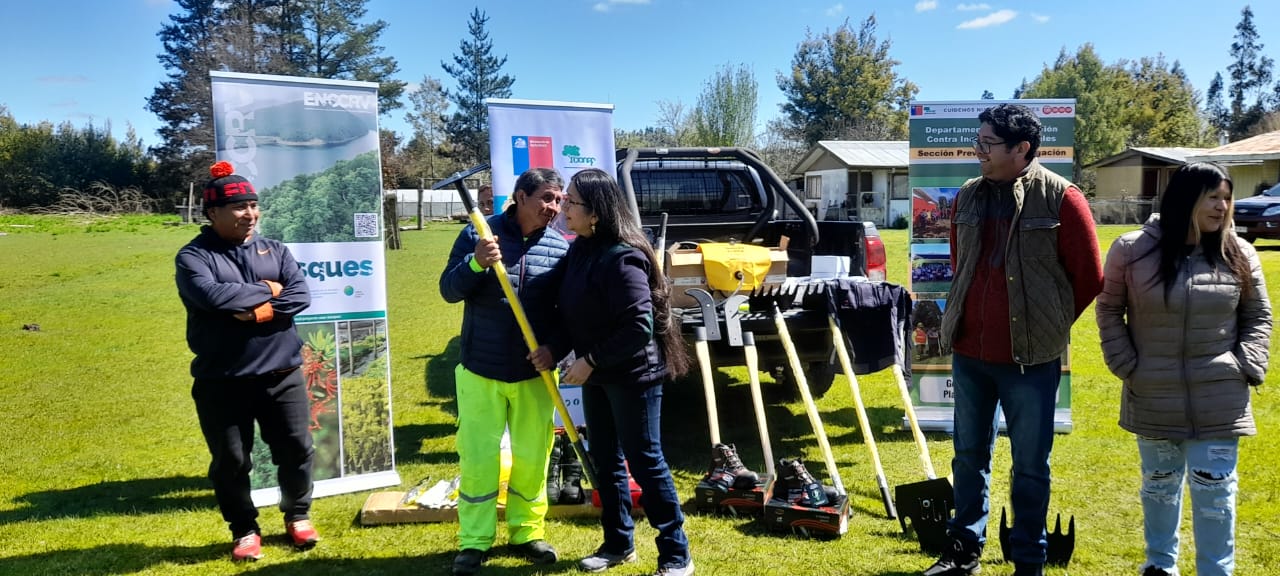 En el marco de la Estrategia Nacional de Cambio Climático y Recursos Vegetacionales (ENCCRV) y su Proyecto +Bosques, CONAF realizó la capacitación denominada “Inducción en prevención y primera respuesta a incendios forestales”, dirigido a 25 socios/as de la comunidad Indígena Felipe Carilaf y Juan Antipi de Quinahue, ambas de la comuna de Galvarino, dotando de conocimientos teóricos y prácticos a los asistentes para desarrollar acciones preventivas y de respuesta ante incendios forestales, así como también la entrega de herramientas e insumos para la gestión en este tipo de siniestros.