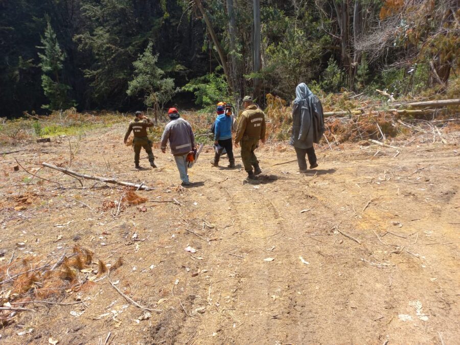 Guardaparques de CONAF y efectivos del O.S.5 de Carabineros sorprendieron al grupo realizando una corta no autorizada de especies exóticas. También detectaron movimiento de camiones en el área afectada.