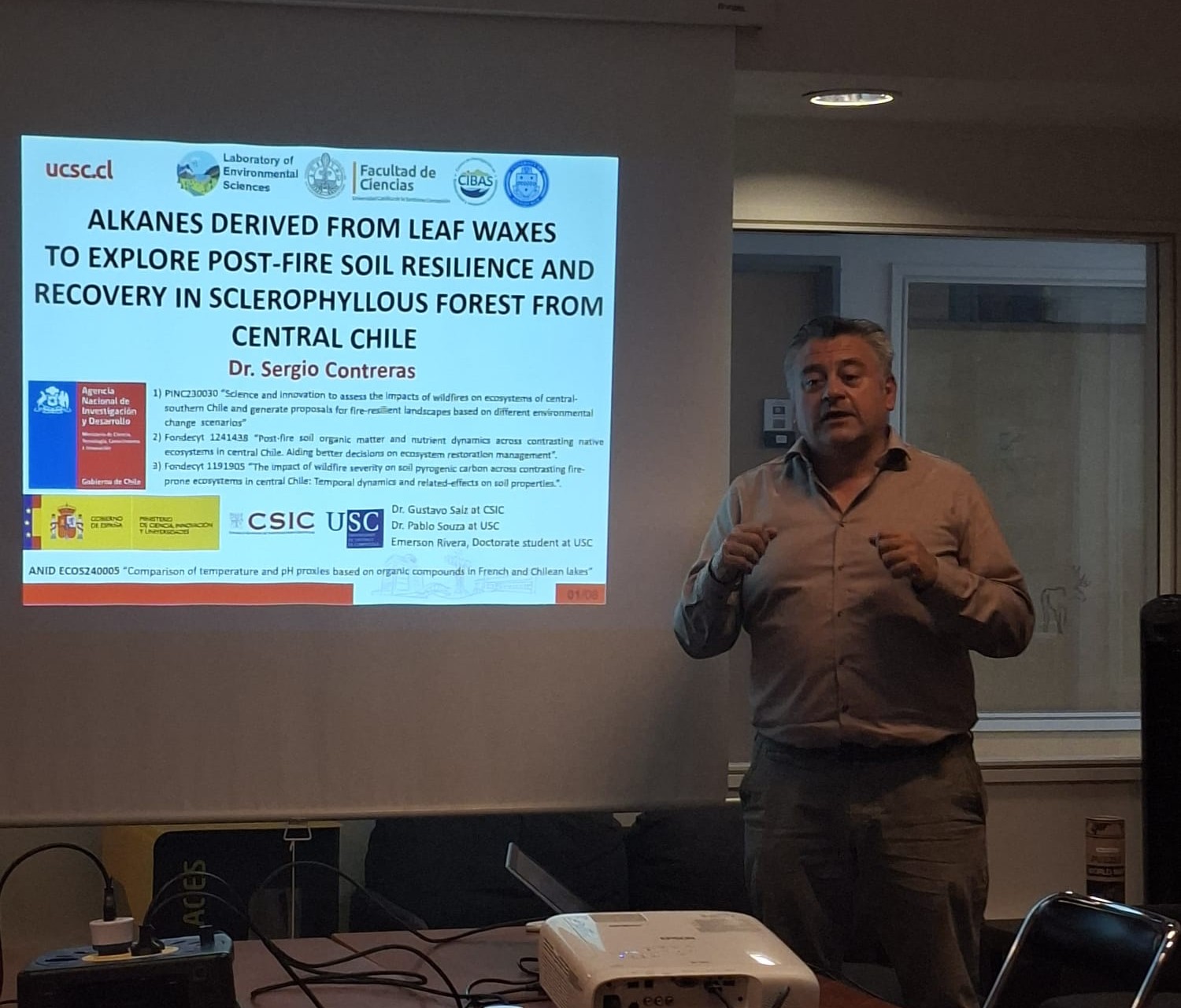 En este contexto, tanto el Dr. Contreras como la estudiante presentaron charlas, abordando temáticas vinculadas a la resiliencia de ecosistemas y al análisis de compuestos orgánicos en ambientes naturales.